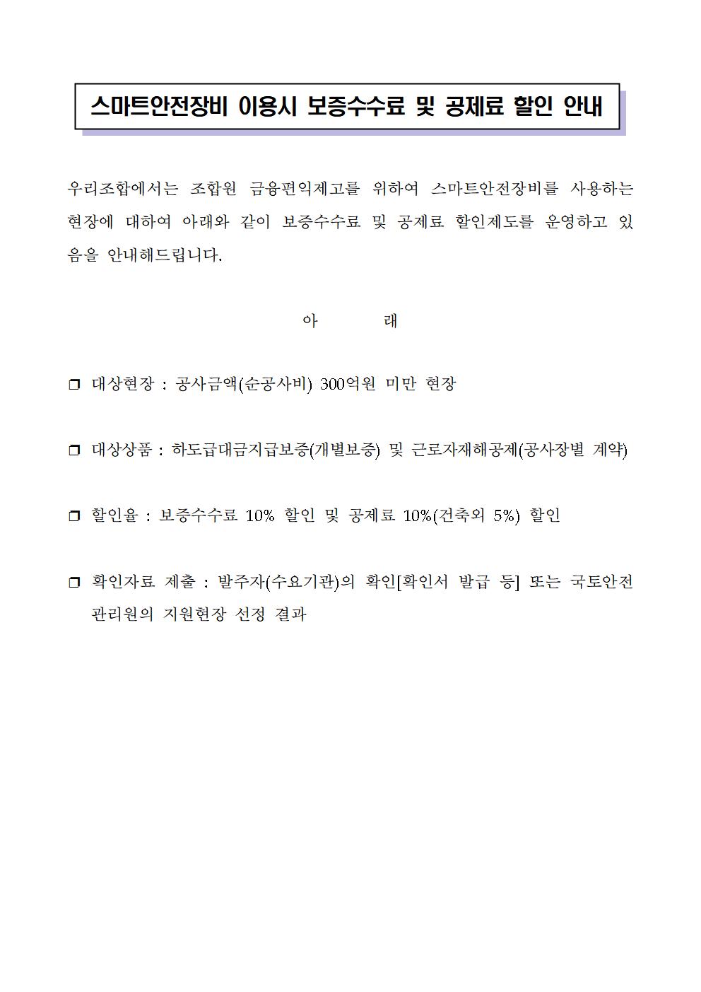 스마트안전장비 이용시 보증수수료 및 공제료 할인 안내